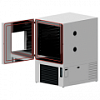- Рабочего объема. Он представляет собой шкаф, внутри которого расположены теплообменники, обеспечивающие требуемые режимы испытаний. Также в нем есть дверь, смотровое окно и система защиты от обмерзания. Чтобы внутрь аппарата не проникала атмосферная влага, следует не оставлять дверь открытой на долгое время.
